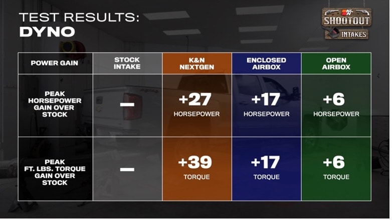 After much testing and enough data to make your head spin, the results were pretty obvious, with the K&N NextGen intake coming out far ahead in every test.