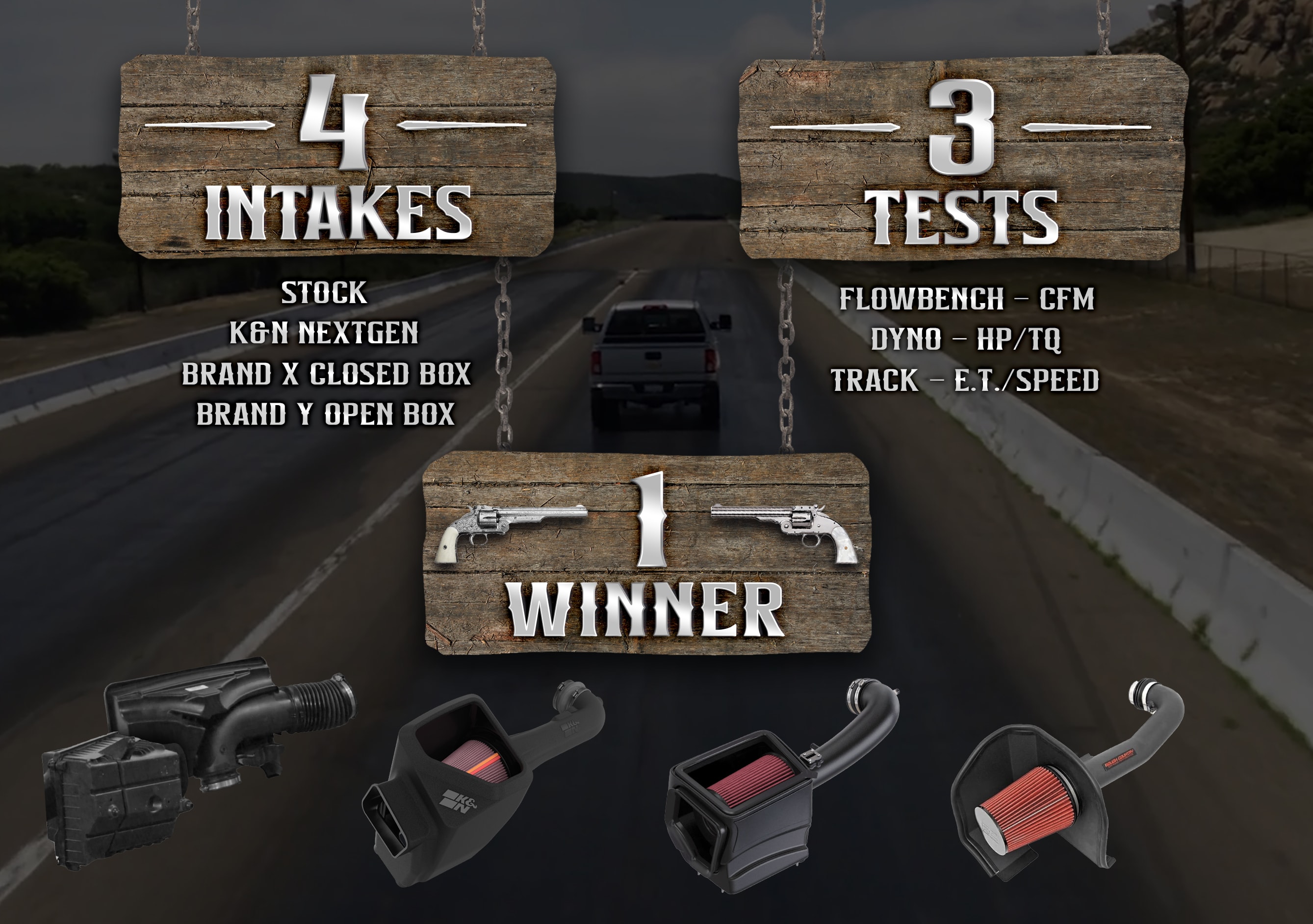 Tired of all the keyboard warriors on the internet arguing about what intake makes the most power? So are we, and it’s time to cut through the noise. This article puts three popular intake styles to the test on a 2018 Chevy Silverado: the new K&N NextGen, a closed box competitor, and a discount open airbox competitor. Using airflow, dyno, and track tests, we measure real-world performance to find out what intake is best!
